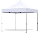 Jetzt Faltzelt FleXtents PRO mieten. Dieser Pavillon ist wasserdicht, UV-beständig und kann in nur 60 Sekunden aufgebaut werden. In der Größe 3×3 Meter bietet die ideale Kombination aus Funktionalität, Flexibilität und Stil. Egal, ob Sie eine private Feier, ein Firmenevent, einen Marktstand oder eine Outdoor-Veranstaltung planen, dieses Zelt schafft einen professionellen und Raum für Ihre Gäste oder Produkte. Hat sich die Sonne mal hinter Wolken versteckt, brauchen Sie Ihre Veranstaltung nicht abzubrechen. Die Seitenteile schützen Sie und Ihre Gäste vor Wind und Wetter